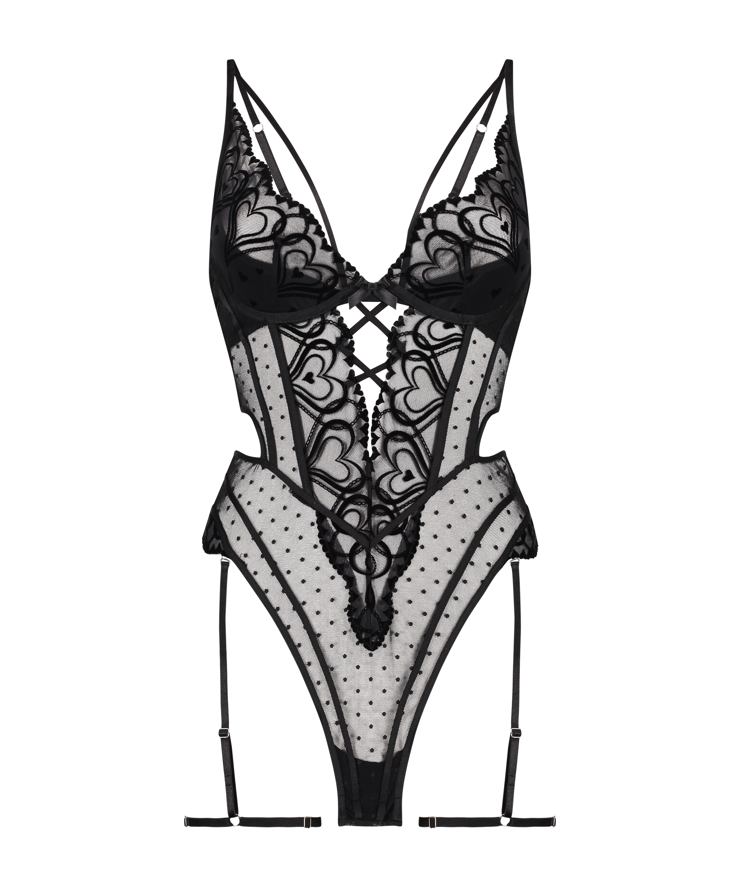 Laissez ce body dévoiler votre pouvoir de séduction ! Il possède une armature pour un soutien renforcé. Un look semi-transparent, un petit nœud papillon et des détails ravissants. Combinez-le avec les pièces assorties pour parfaire votre lingerie.
