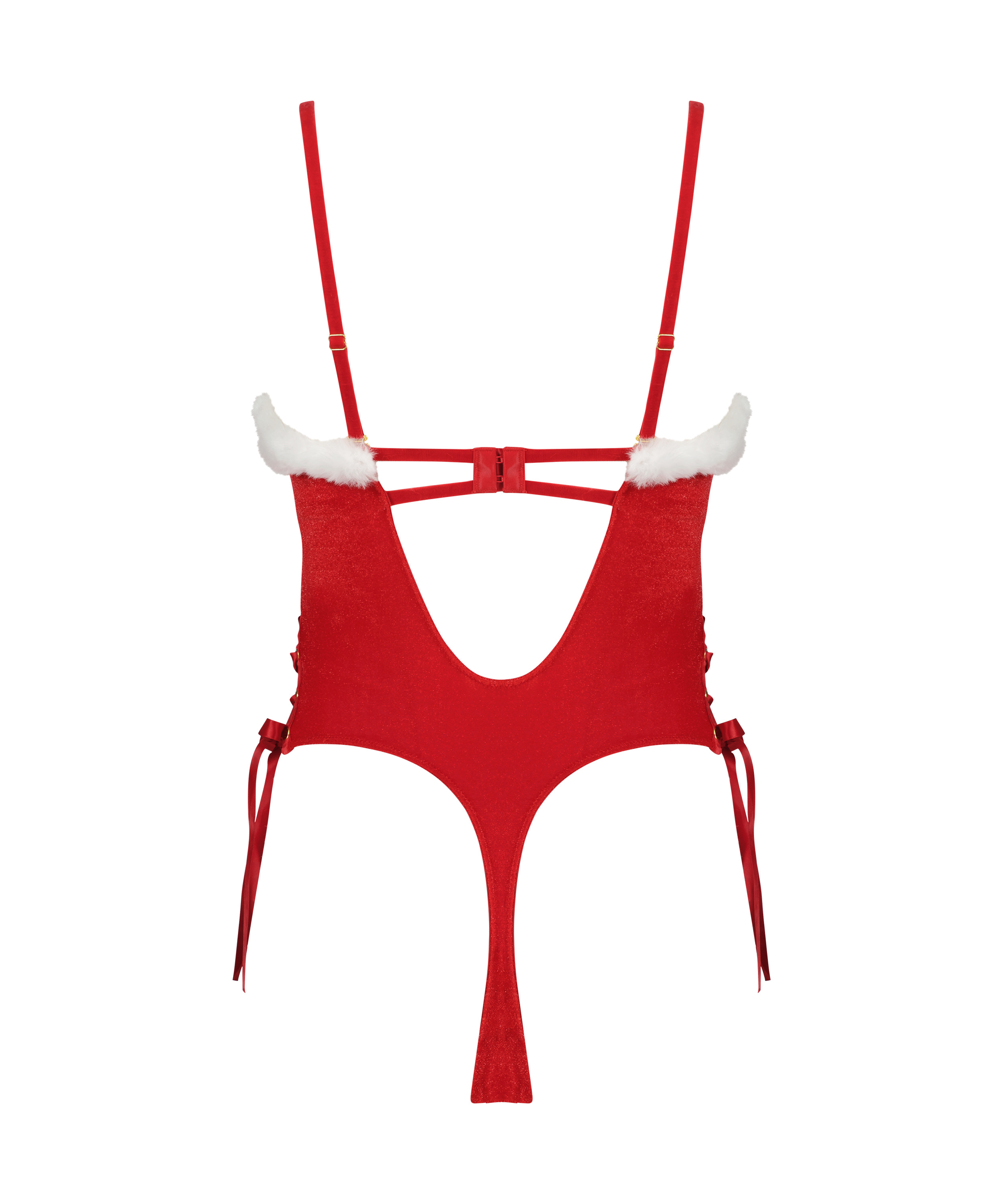 Il est temps d'être festif avec cet impressionnant corps de vacances ! Avec un doux toucher velours sur toute la surface, et bien entendu de la fausse fourrure sur les bords. De jolis nœuds sont ajoutés de chaque côté. Affichez votre esprit de vacances !