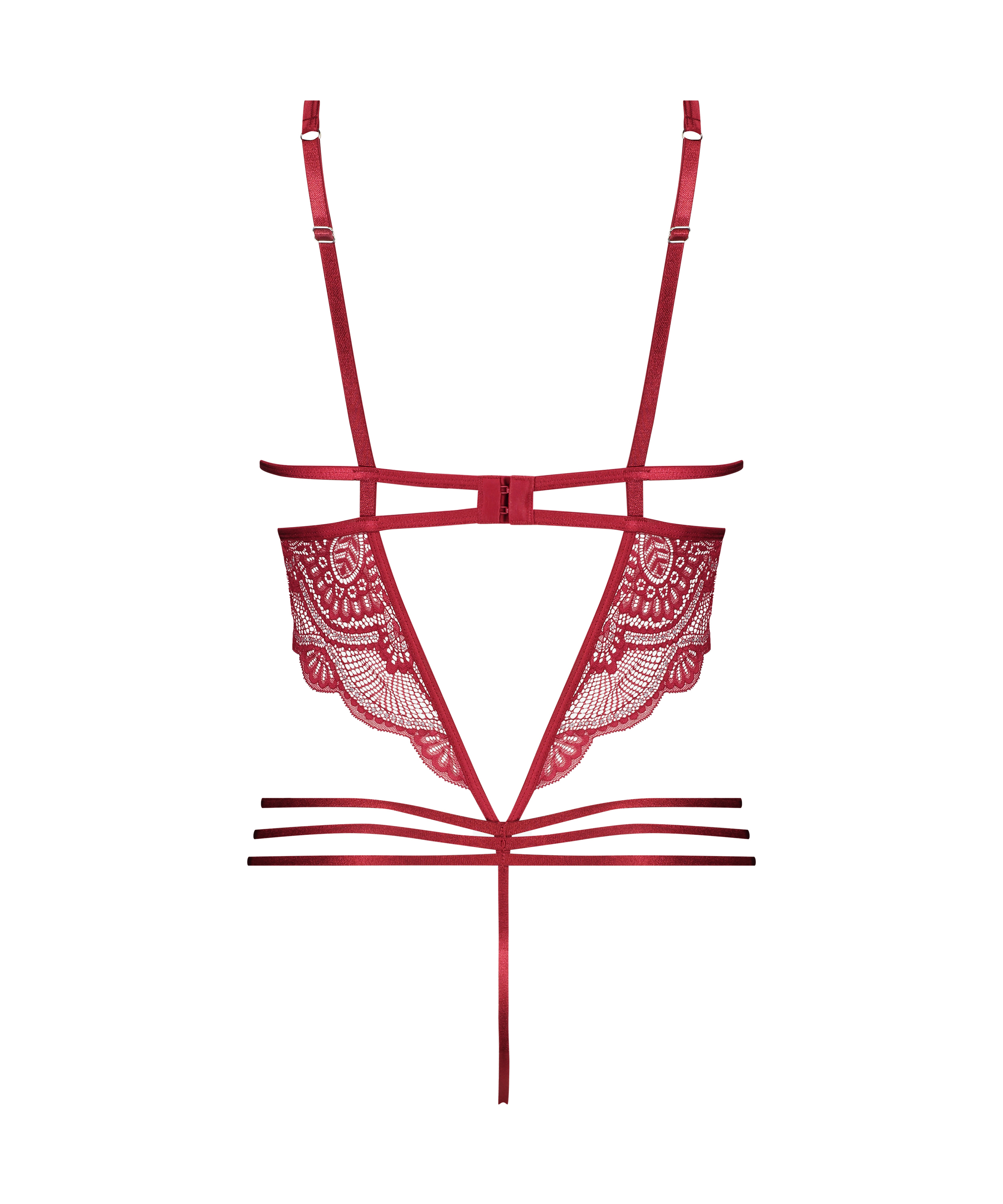 Ce body est fait de dentelle, associé à un tissu satiné. Le body a une sangle sous les bonnets. Caractéristique spéciale du body, les détails supplémentaires à lanières. Une partie de la collection privée.