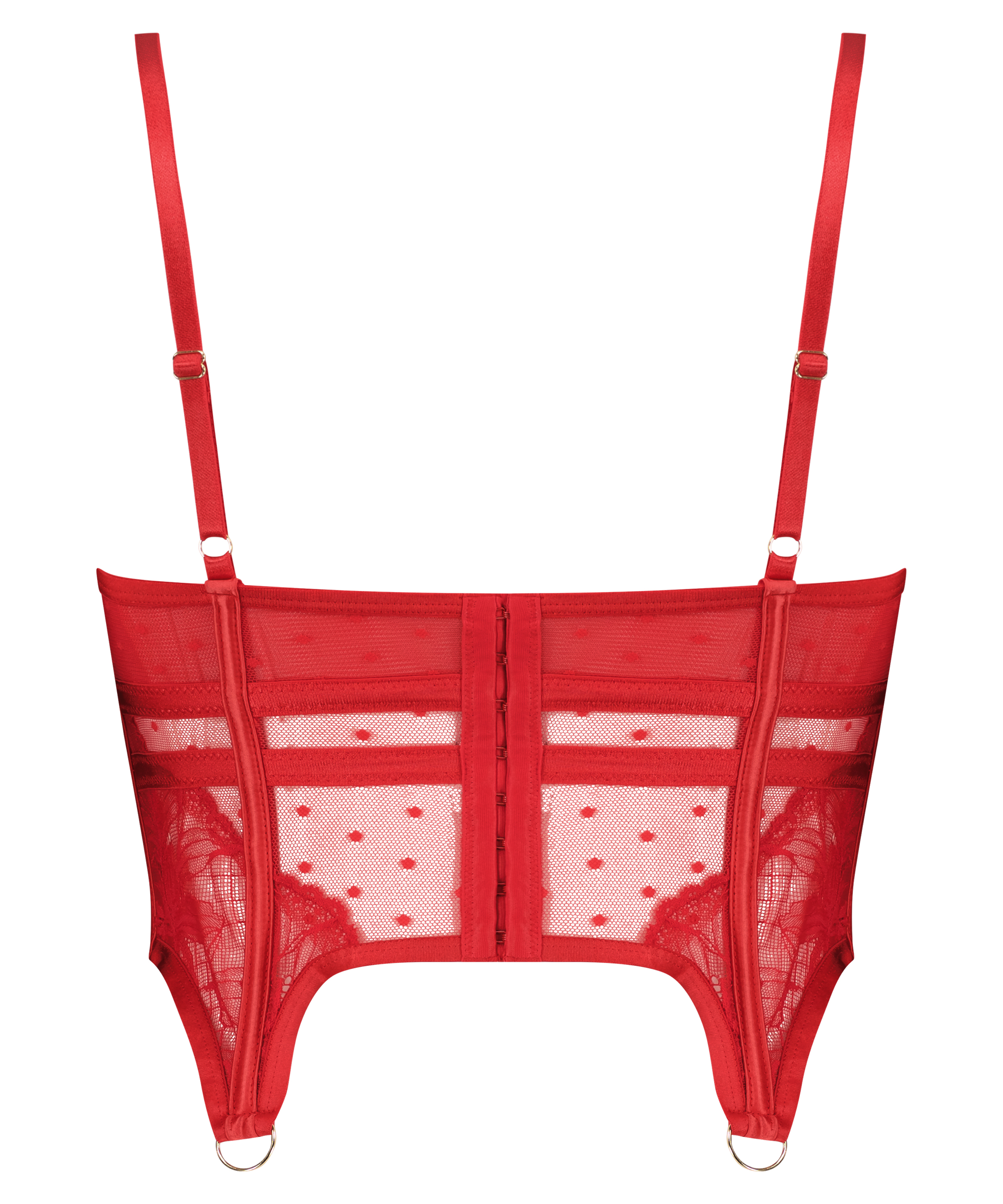 Soyez sexy dans ce magnifique bustier !Il est doté de bonnets confortables et non rembourrés, avec des découpes et des bretelles. Il garantit un très bon maintien grâce à l'ossature frontale, latérale et dorsale qui vous donnera une allure superbe. Il est entièrement en dentelle et en maille semi-transparente, et il est possible d'y attacher des bretelles de bas. Complétez l'ensemble avec la culotte assortie ! Le modèle fait partie de notre collection Private.