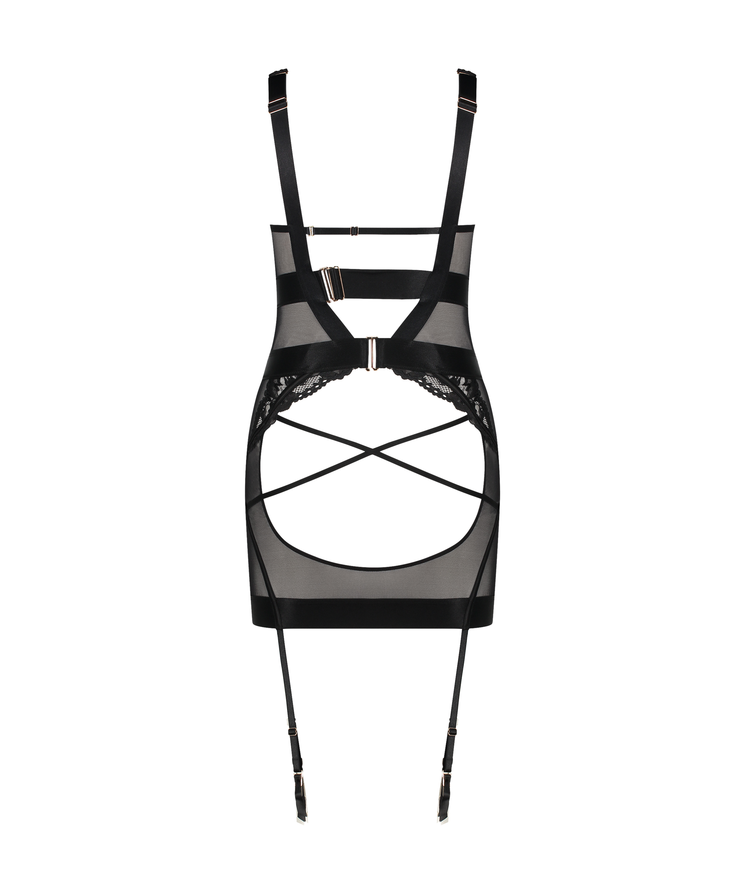 À mi-chemin entre la robe et le bustier, cette nuisette remarquable est une pièce langoureuse qui ne manquera pas de rehausser vos tenues ! Ce modèle est doté d'une armature qui aide à créer une silhouette flatteuse. La finition satinée douce et chic des bretelles ajoute une note de féminité. Des œillets vous permettront de styliser cette nuisette à votre guise. Associez-la à la culotte assortie et à une paire de bas pour un look captivant. Cet article fait partie de la collection Private.