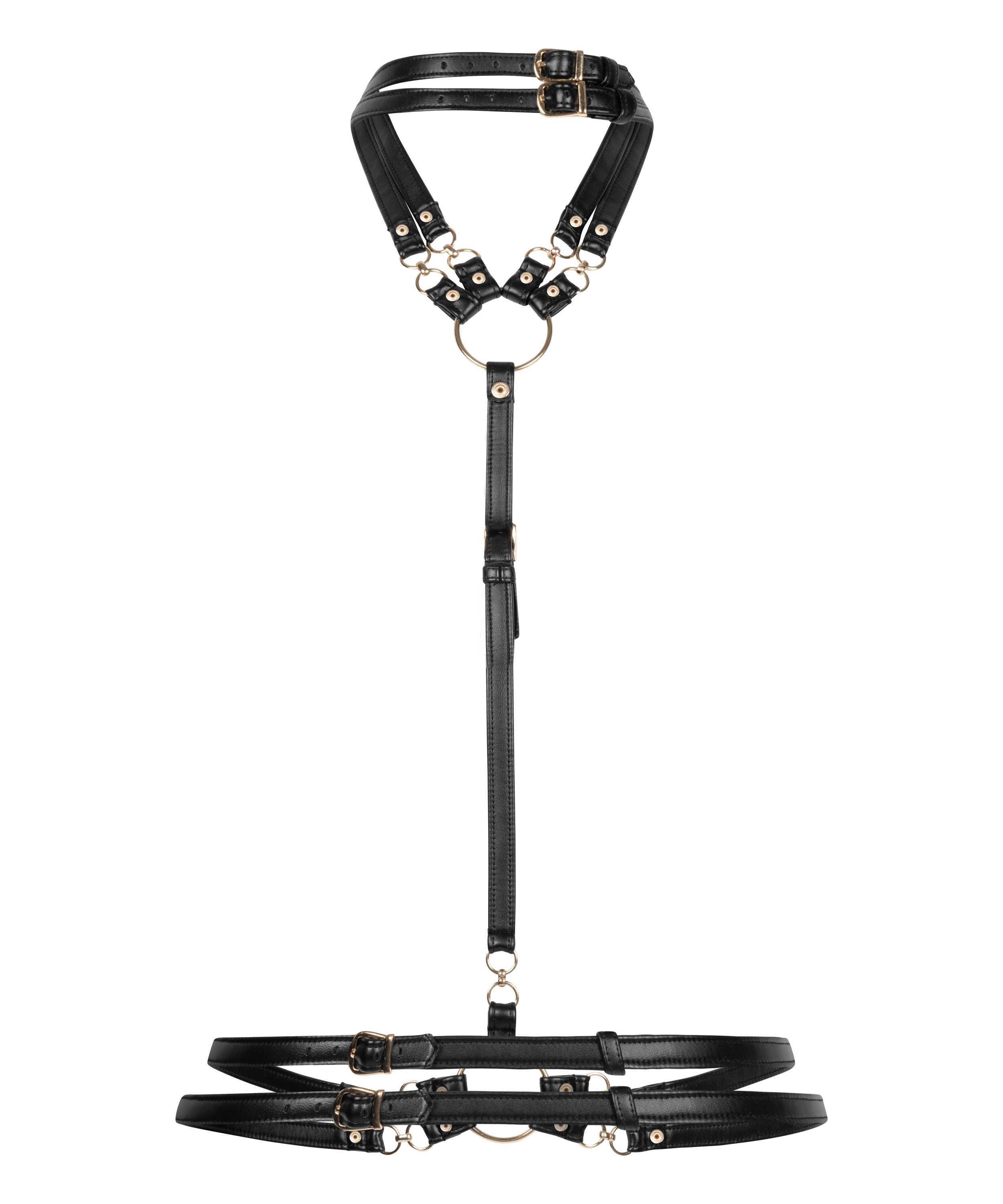 Mettez du piquant dans votre vie avec ce harnais en faux cuir. Avec de nombreux éléments de fixation et des boucles réglables pour un ajustement parfait.