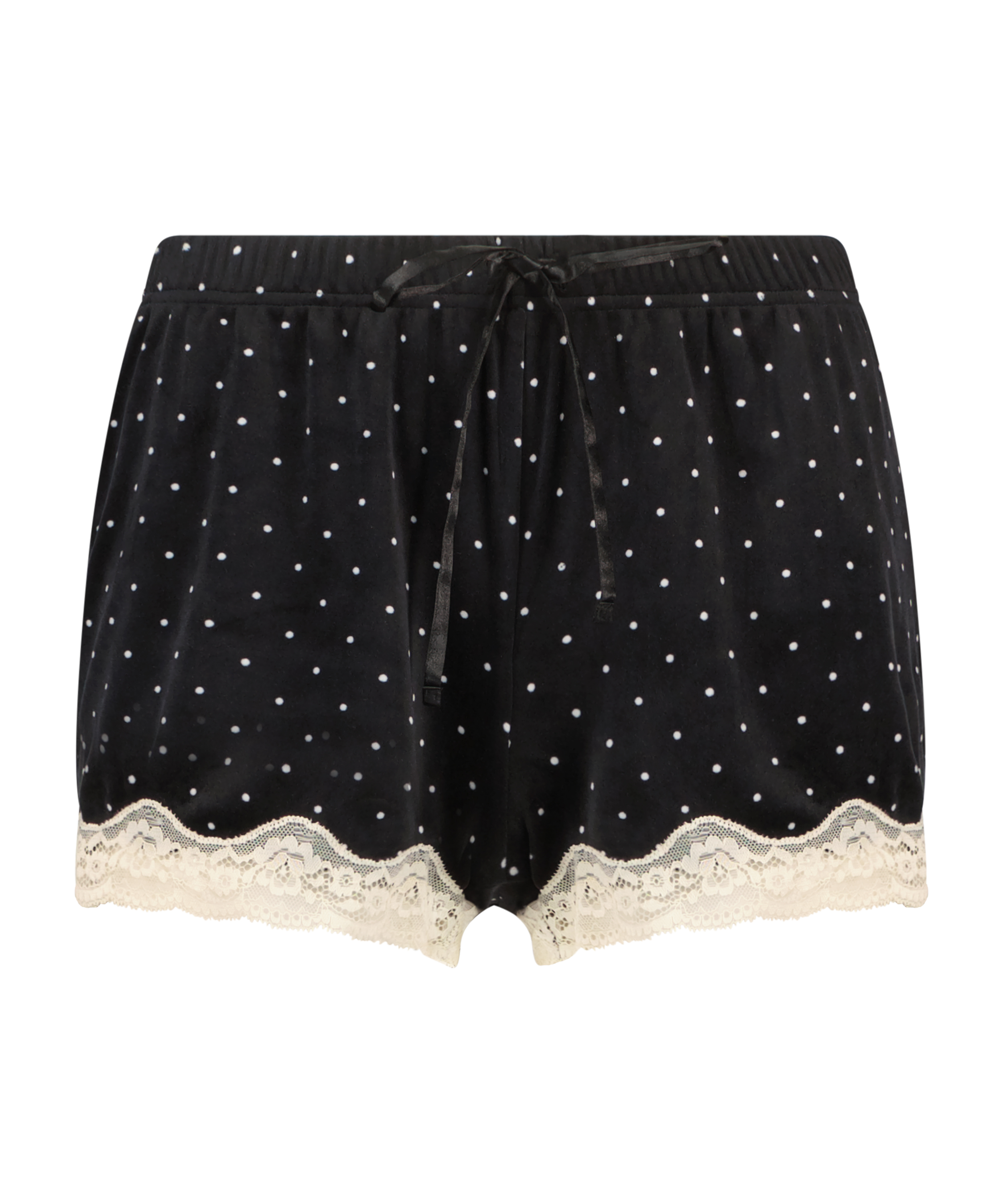 Un short tout doux aussi sexy que féminin ! Il est réalisé en velours et a des détails dentelle très sexy. Combinez-le avec les articles assortis.
