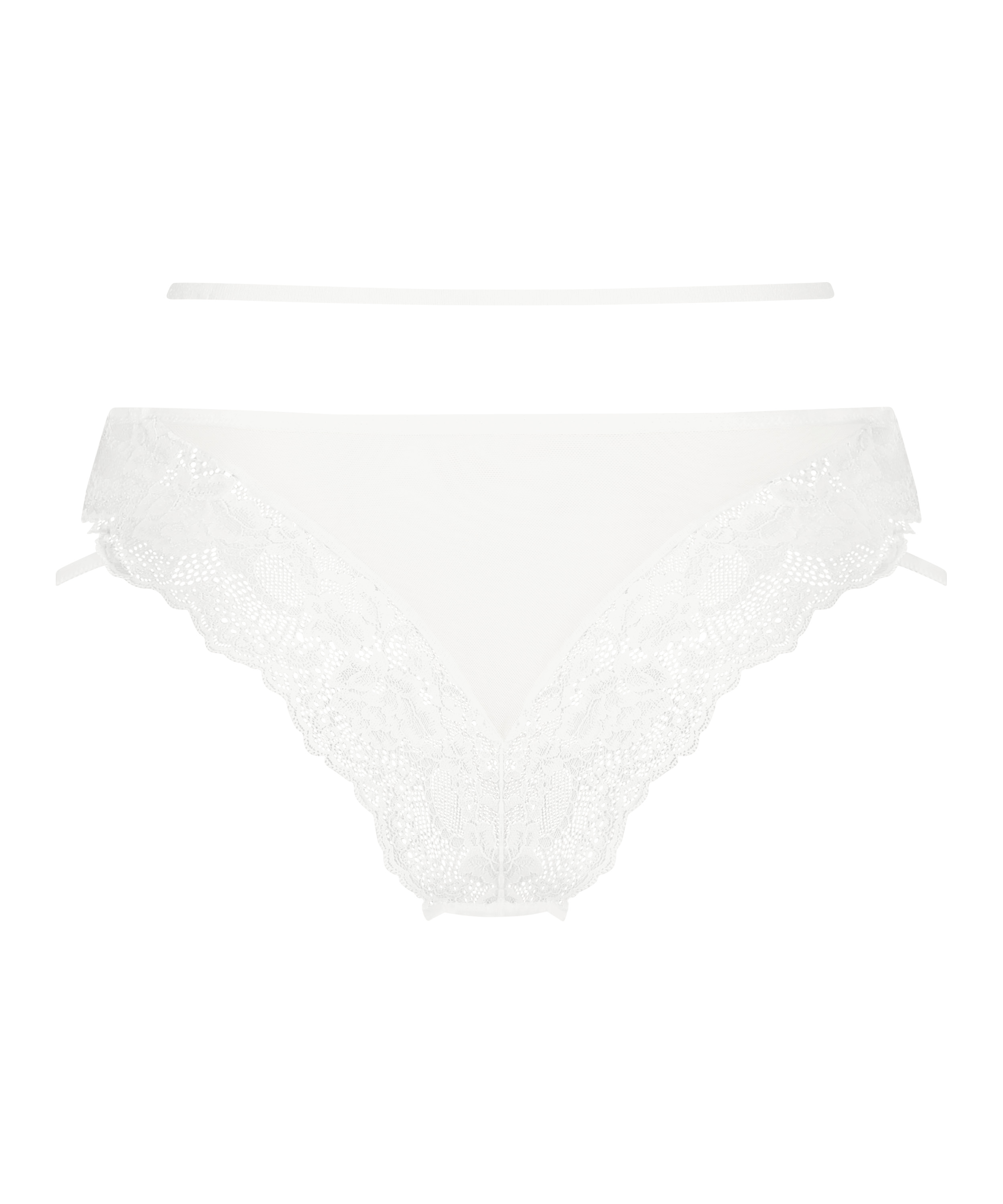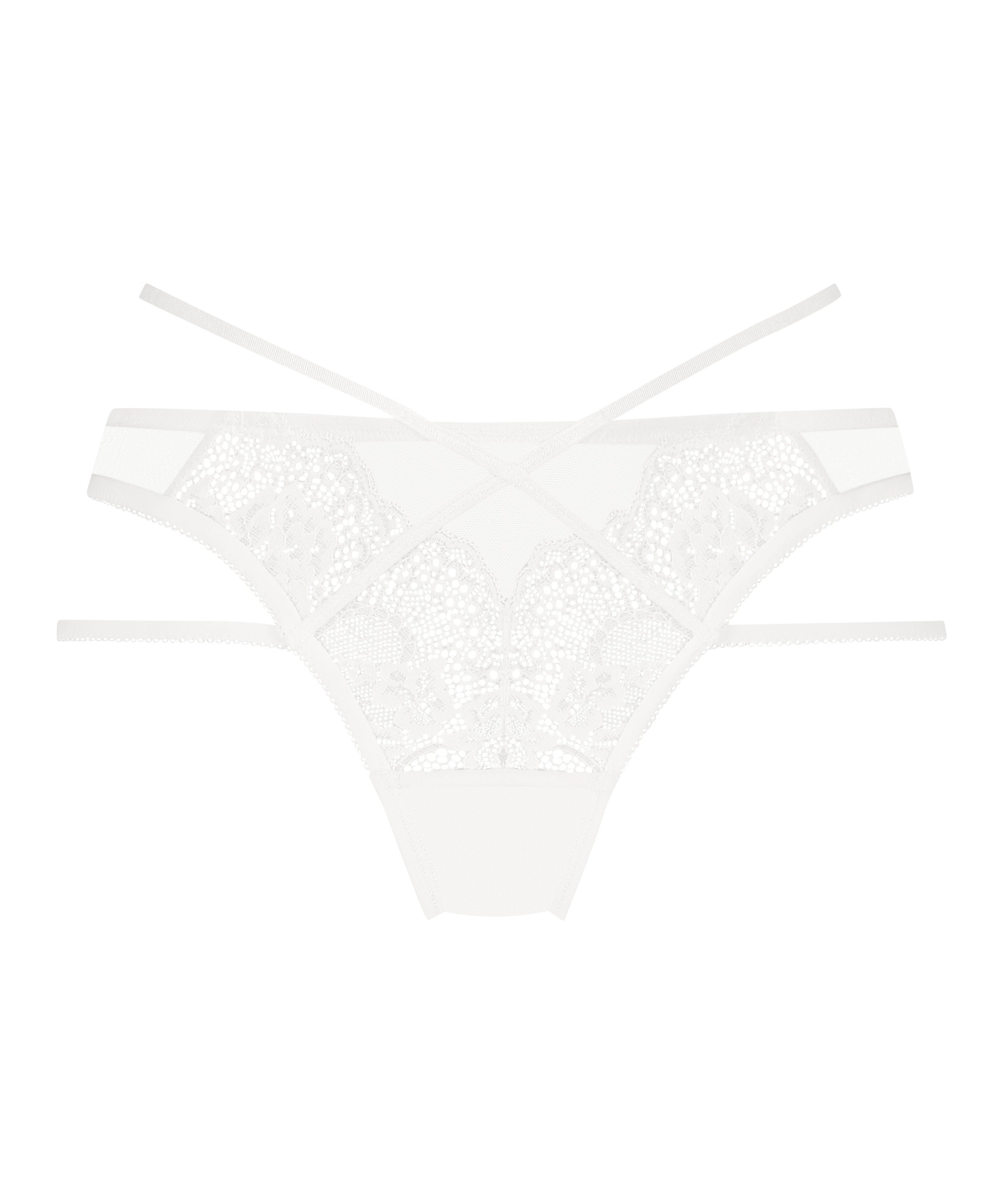 Ne passez pas à côté de ce joli slip brésilien ! Avec un look tout en dentelle sur le devant et le dos. Il y a des détails à lanières frontales et latérales pour davantage de raffinement. L'entrejambe est soutenu par une matière super douce pour un port optimal. Trouvez le soutien-gorge assorti !