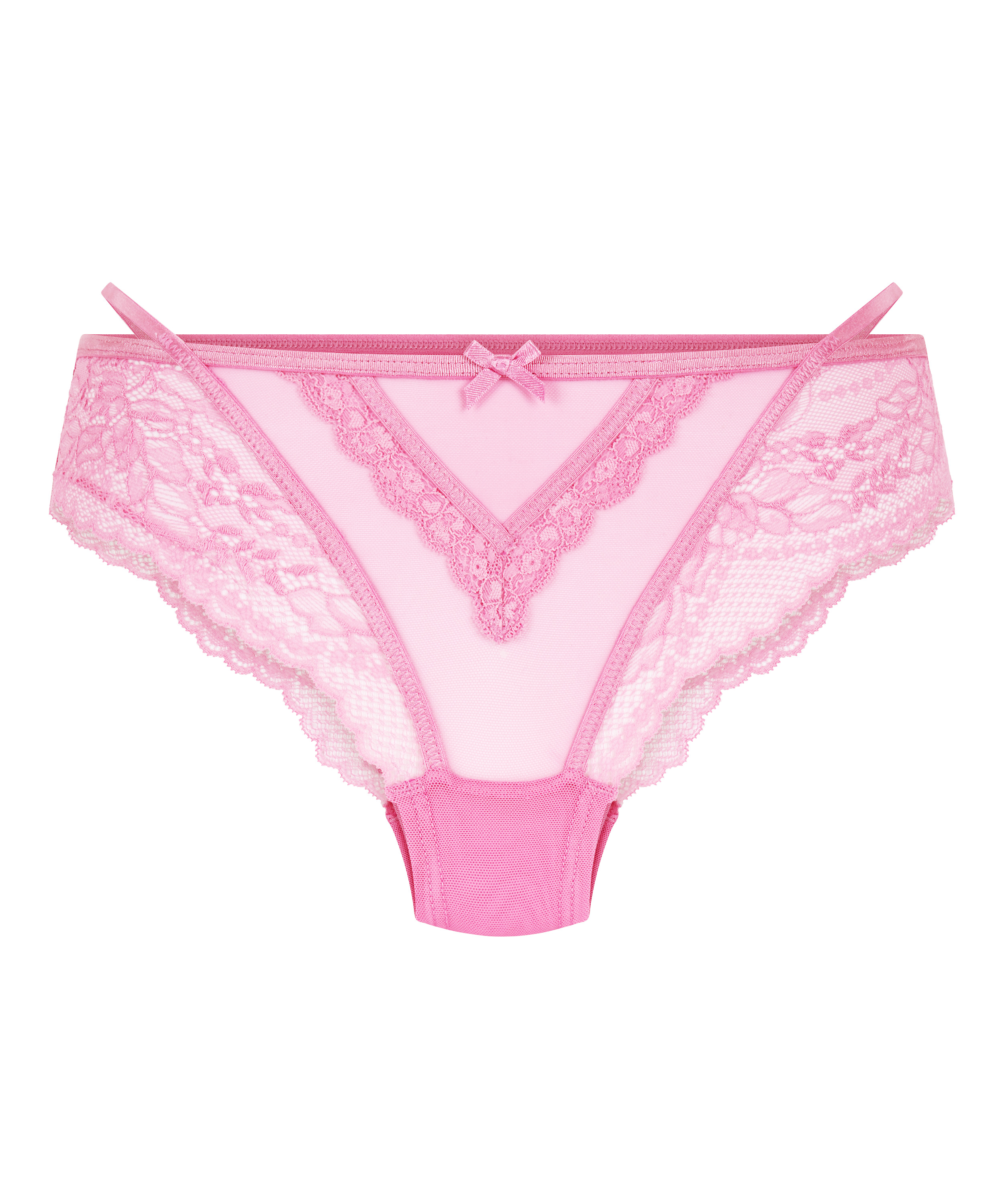 Ce slip brésilien a vraiment cet effet wow ! Le slip est orné de beaucoup de dentelle et a un nœud sur le devant. À combiner avec un soutien-gorge ou une brassière assorti(e) pour parfaire votre ensemble.