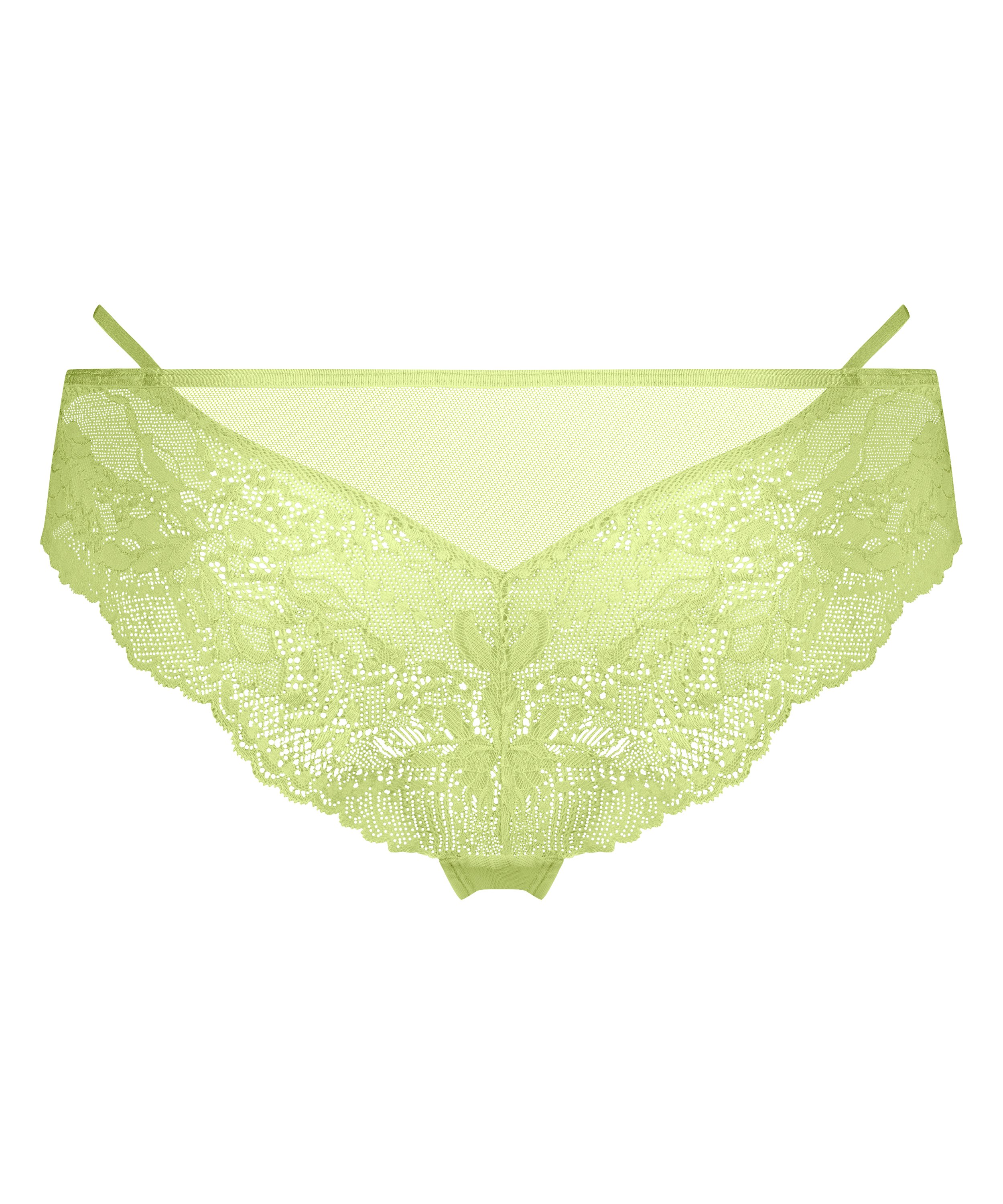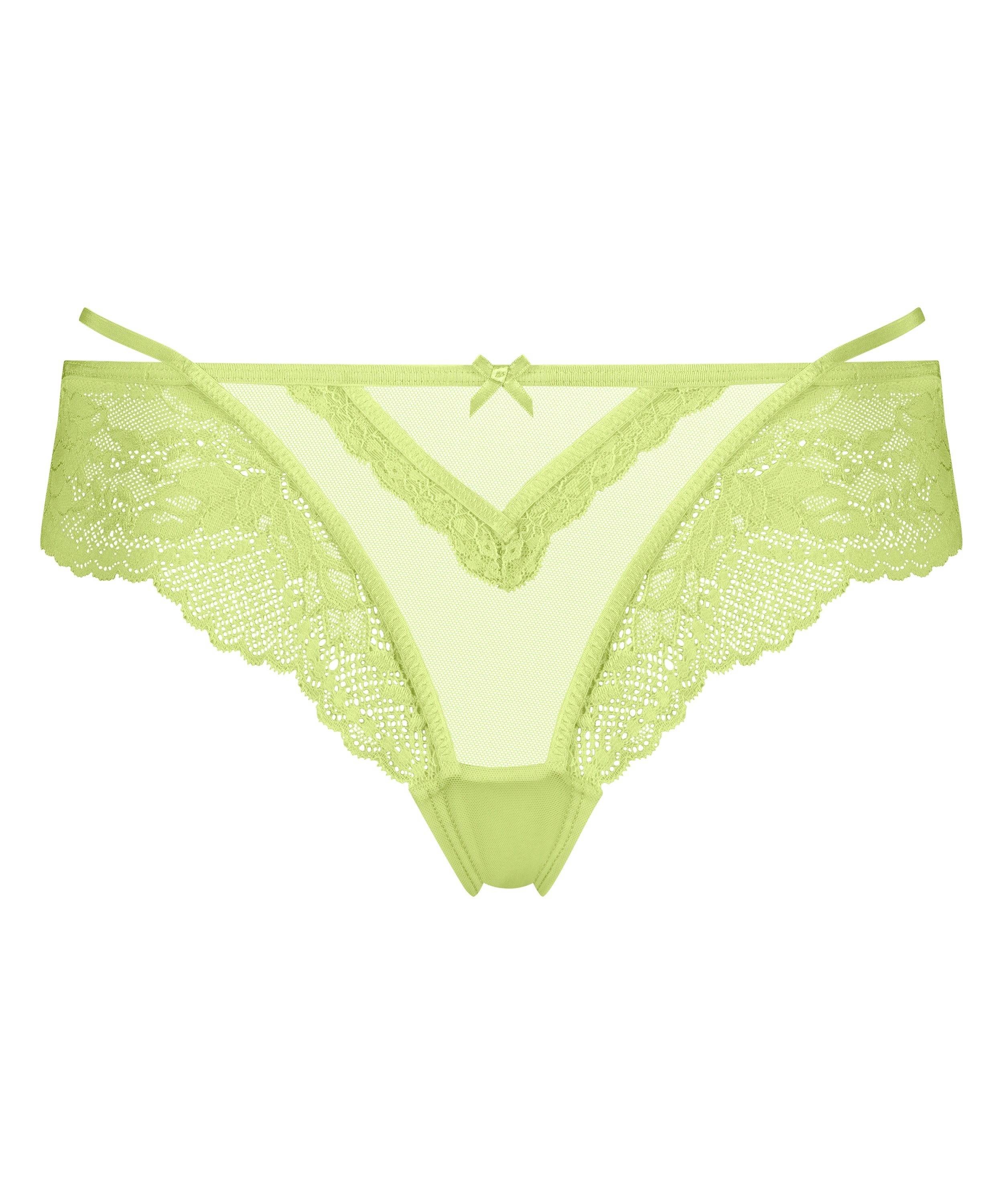 Ce slip brésilien a vraiment cet effet wow ! Le slip est orné de beaucoup de dentelle et a un nœud sur le devant. À combiner avec un soutien-gorge ou une brassière assorti(e) pour parfaire votre ensemble.