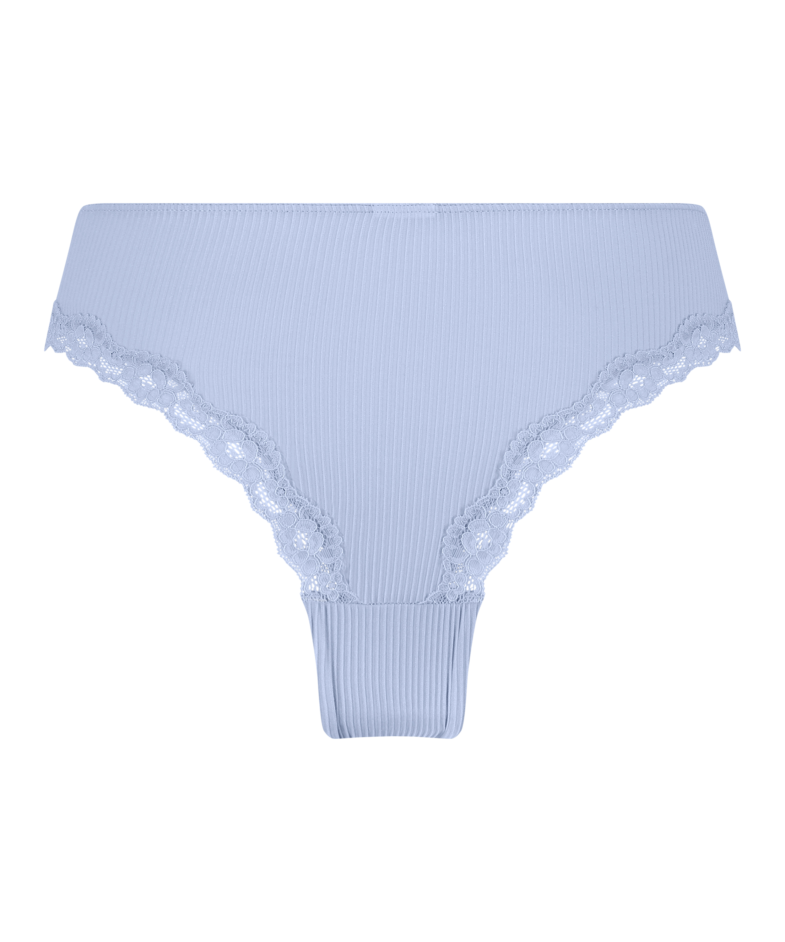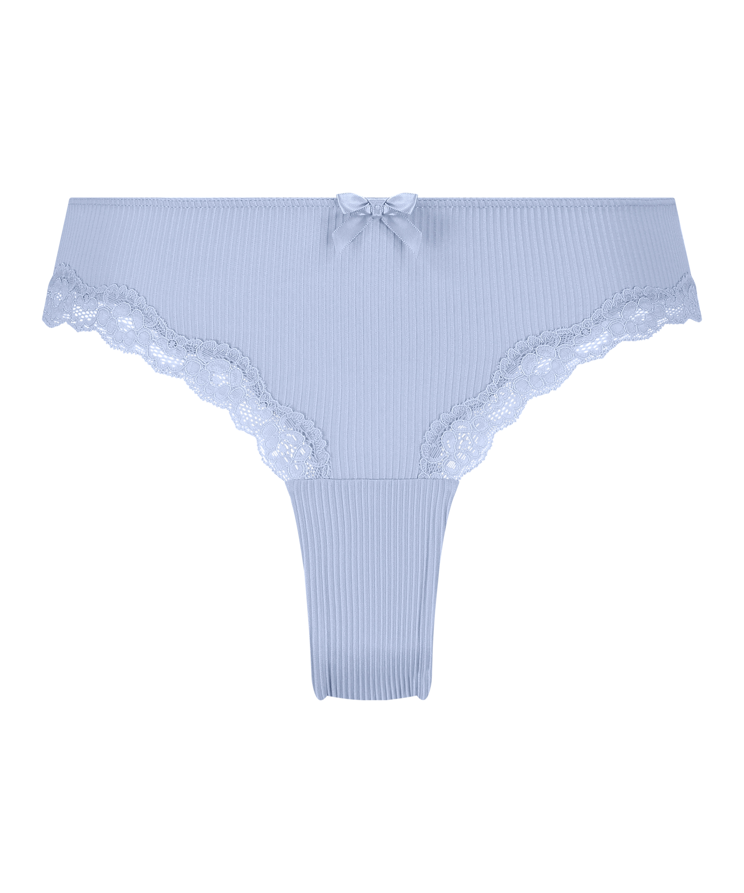 Ce slip brésilien est un must ! Il est confectionné dans un tissu côtelé et est orné d'une bordure en dentelle. Le slip brésilien est décoré avec un petit nœud à l'avant. Complétez votre ensemble avec le soutien-gorge assorti.