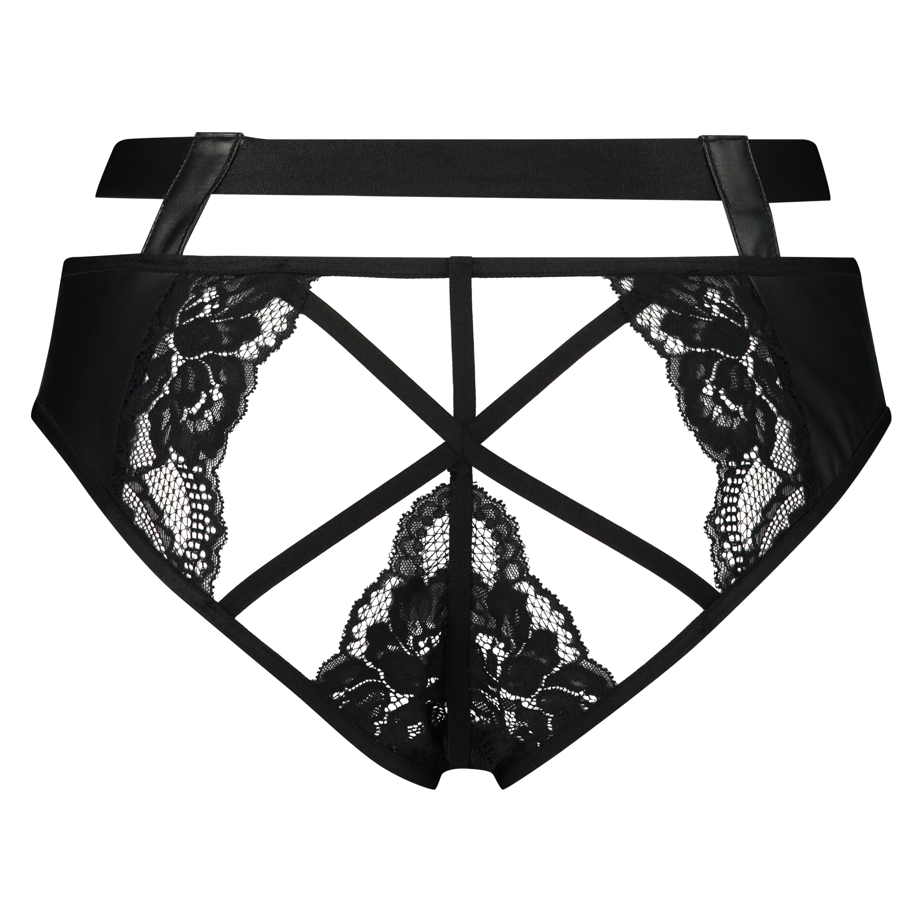 Sentez-vous super sexy dans ce slip brésilien ! Le slip brésilien est fini avec des détails de dentelle et de cuir ! Le slip brésilien a un entrejambe ouvert et un détail découpé sexy sur le devant. La sangle en haut est finie avec des clous. À combiner avec un soutien-gorge assorti pour parfaire l'ensemble ! Article de la collection Private.