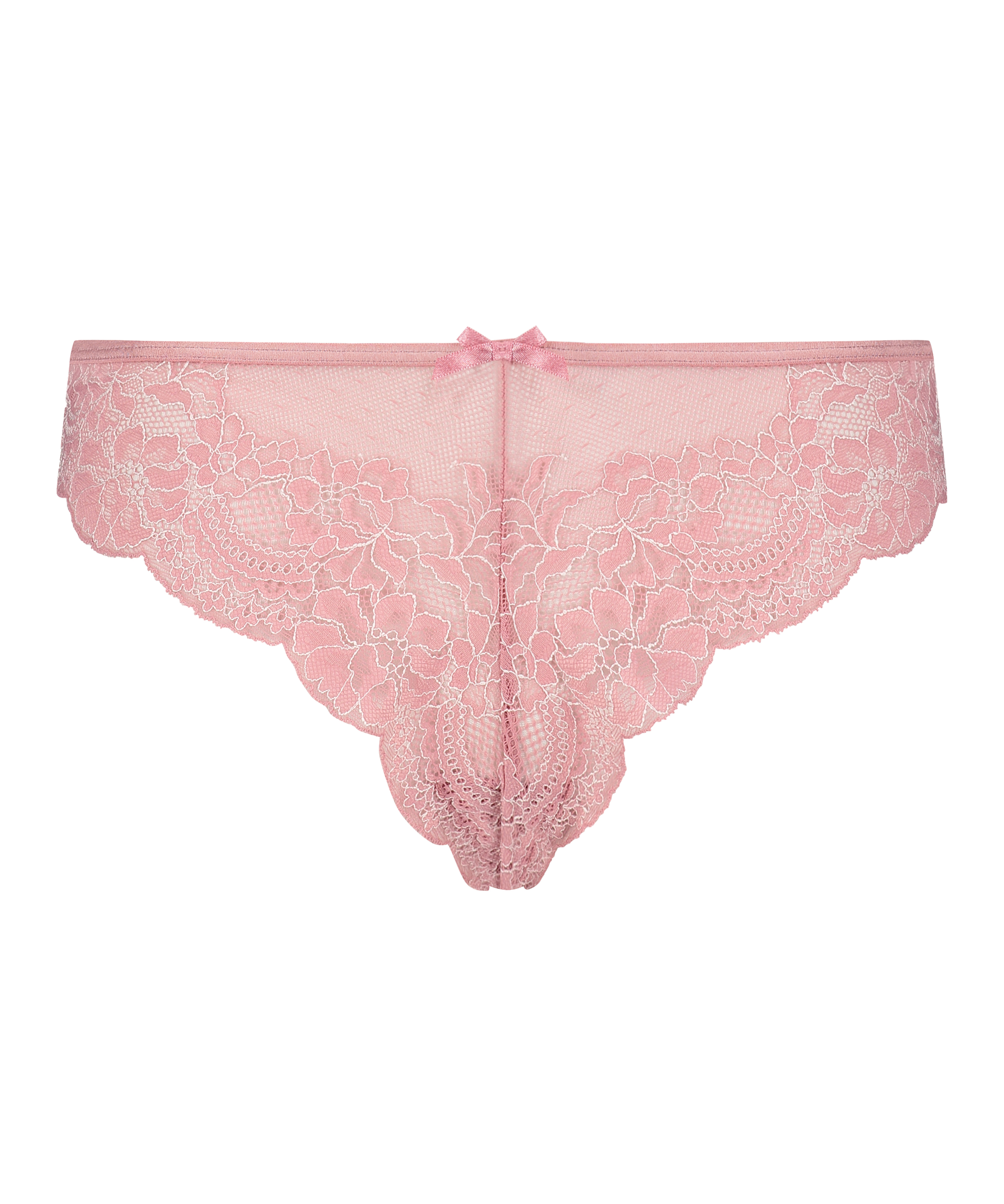 Ce slip brésilien vous permet de parfaire votre look ! Il est fait de dentelle semi-transparente et le nœud sur le devant est une belle touche finale. À combiner avec votre soutien-gorge préféré.