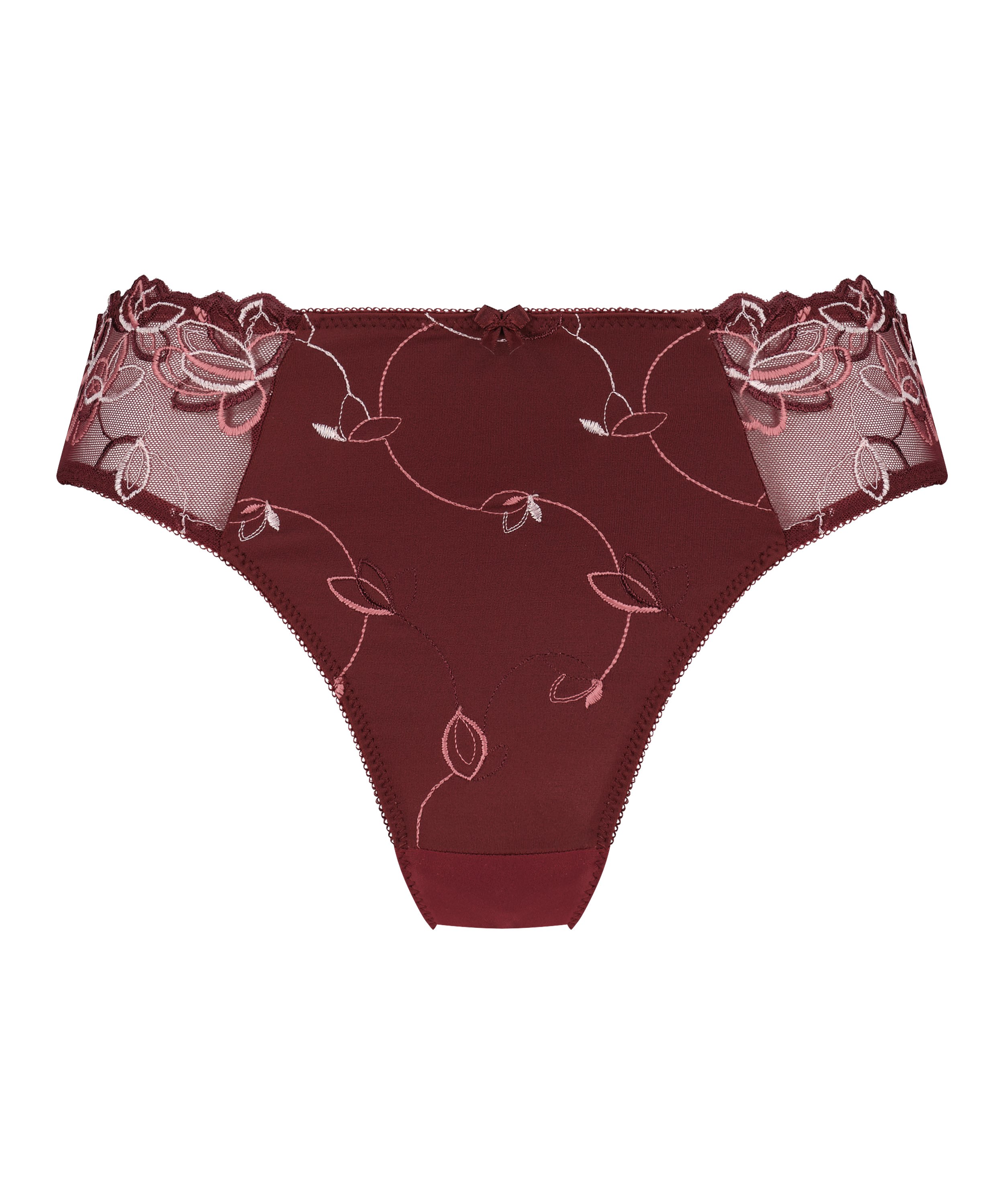 Slip très confortable, réalisé dans une qualité très souple. Modèle décoré de broderie à fleurs et d'un petit nœud devant.