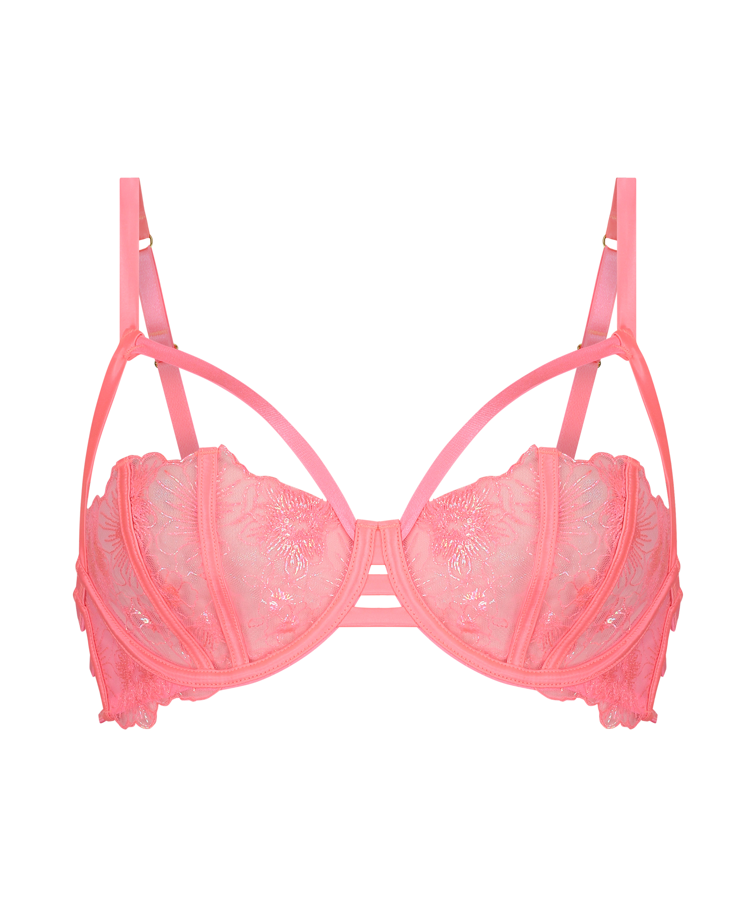 Vous aurez un look irrésistible avec ce soutien-gorge ! Il est transparent, a un joli motif floral et des détails à lanières. À combiner avec des articles assortis ! Fait partie de la collection Private.