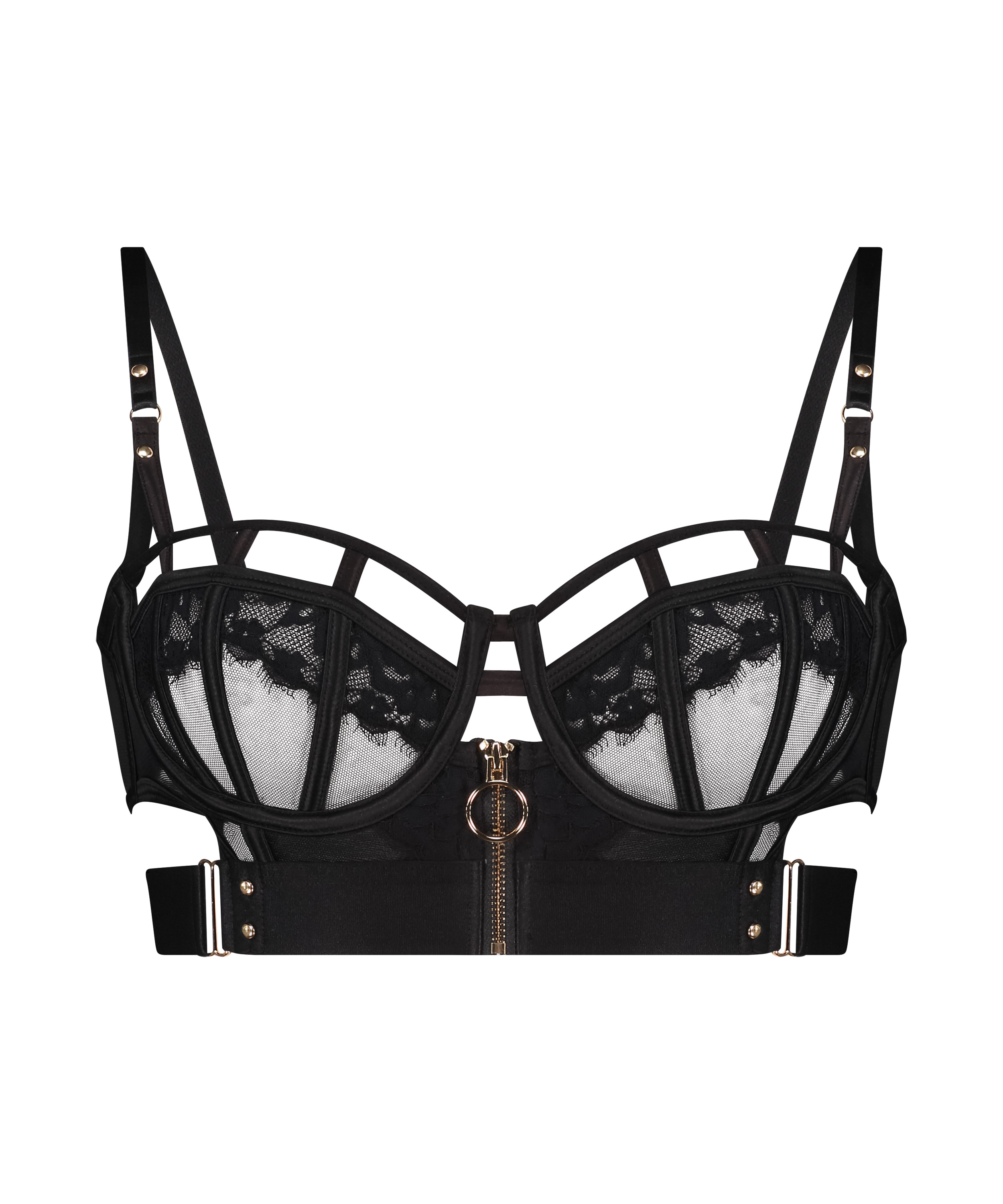 Ce soutien-gorge crée un look super sexy ! Le soutien-gorge n'est pas préformé et possède des armatures. La dentelle et les détails dorés complètent votre look ! À combiner avec des articles assortis pour obtenir un ensemble complet. Article de la collection Private.