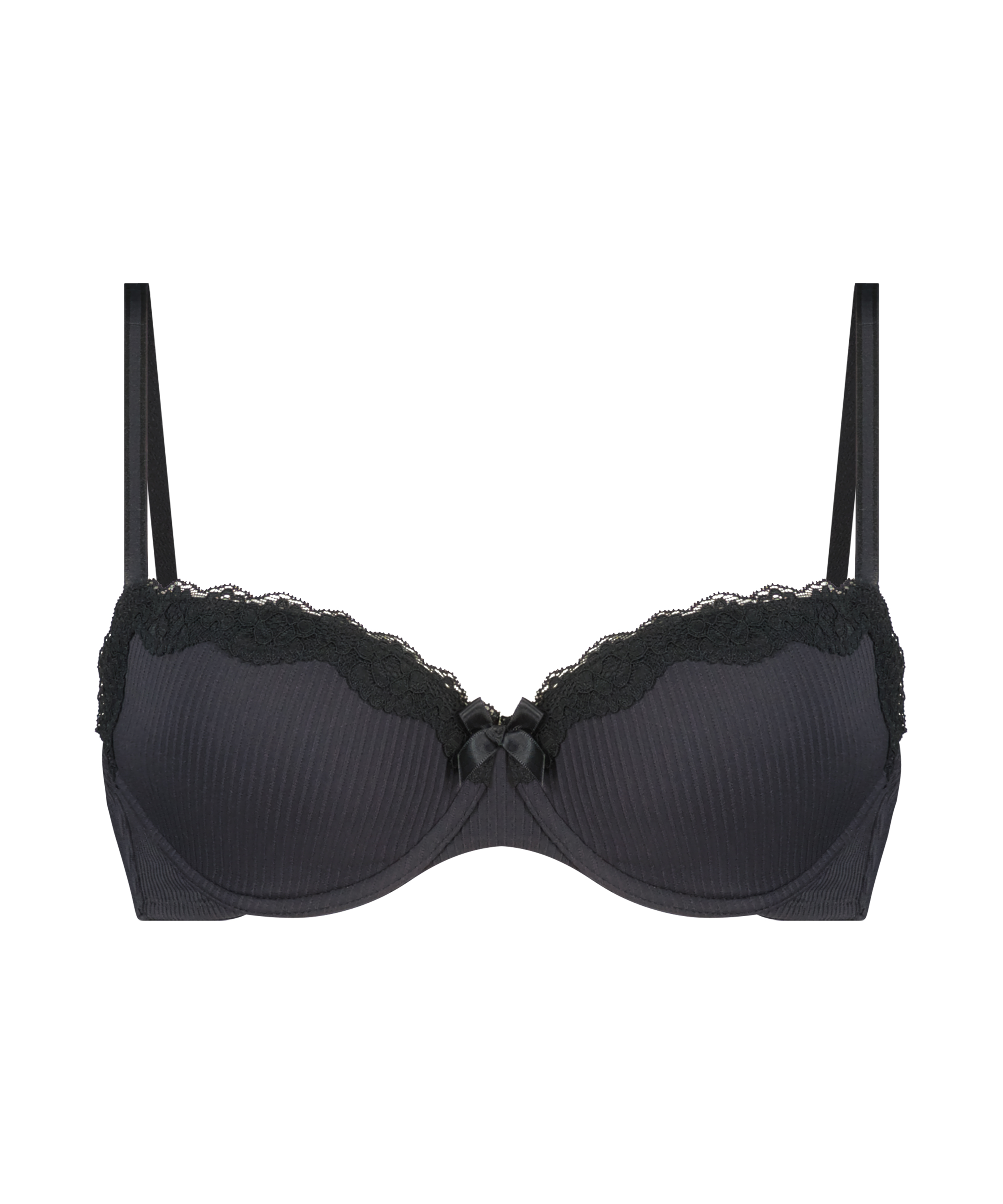 Ce soutien-gorge rembourré à armatures est orné de détails en dentelle sur le haut des bonnets. Il y a un petit nœud entre les bonnets pour un look extra sexy. À combiner avec les éléments assortis !