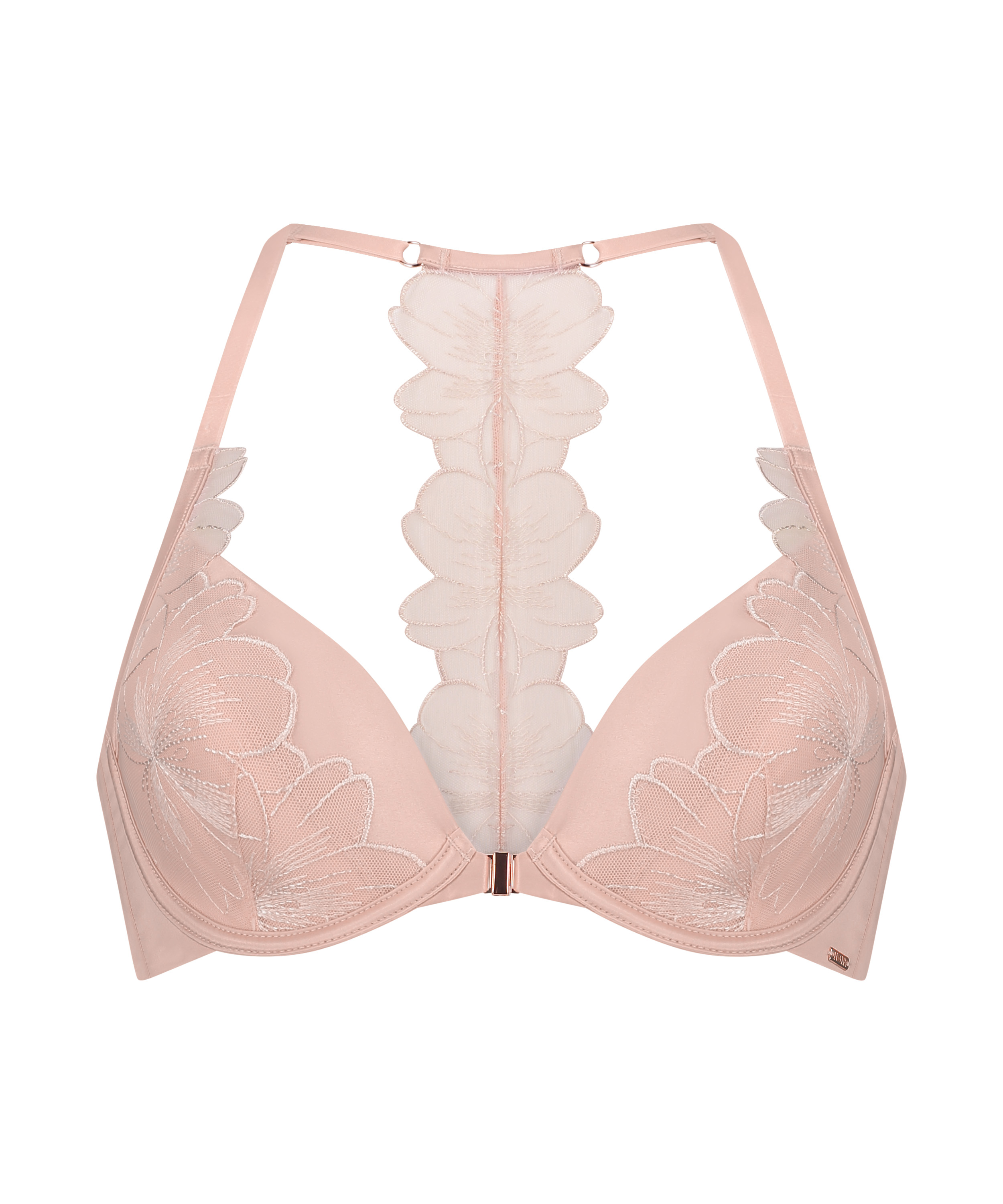 Sens-toi sexy dans ce superbe soutien-gorge ! Ce soutien-gorge rembourré est doté d'un clip de fermeture sur le devant et des bonnets décorés de magnifiques fleurs brodées. Il est doté de bretelles réglables et de superbes détails en dentelle dans le dos. Complète ton look avec les culottes assorties.