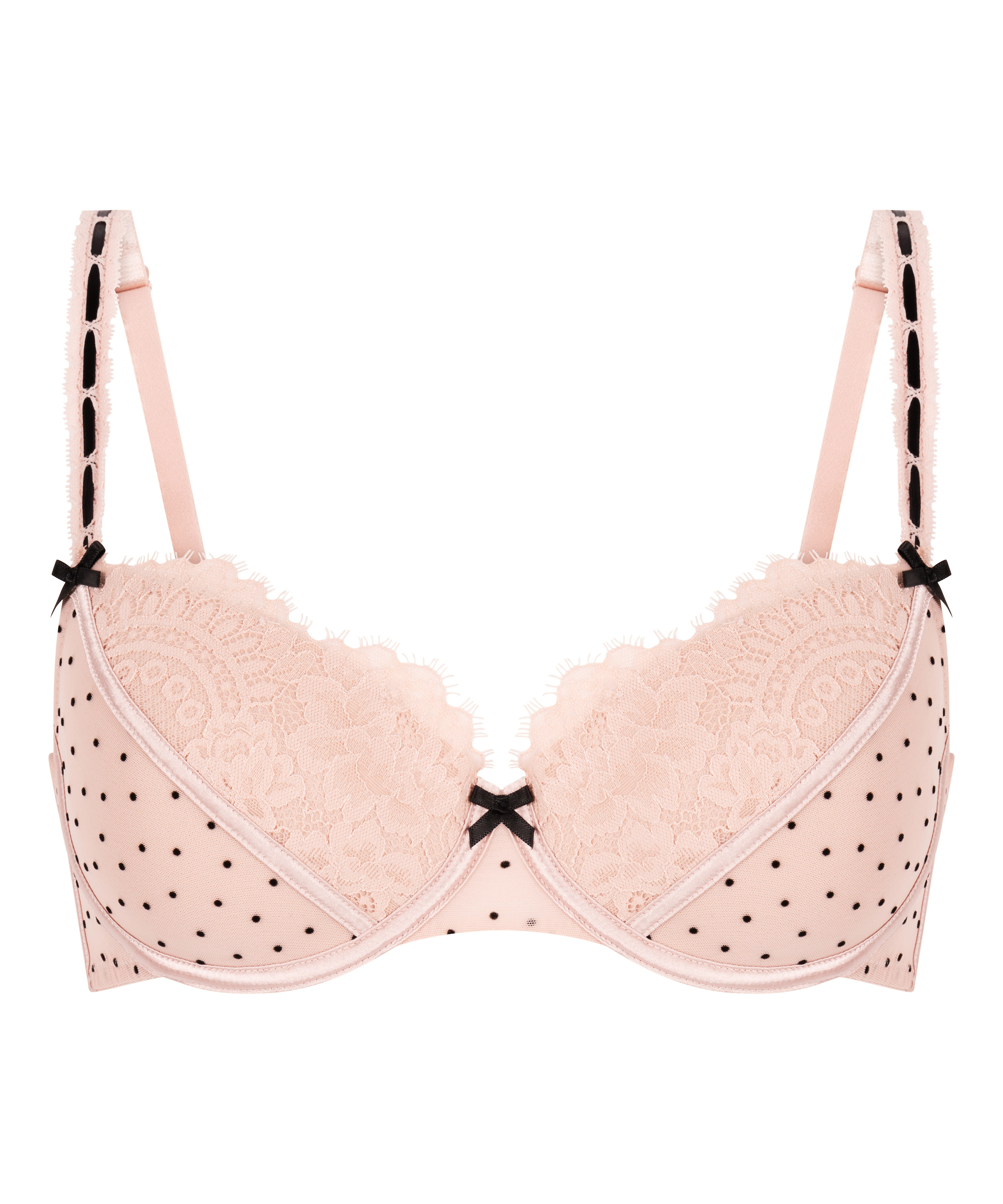 Ajoutez une touche de charme à votre collection de lingerie avec notre soutien-gorge Dorothy. Conçu avec un rembourrage doux et des armatures, il offre un port flatteur et un grand confort tout au long de la journée. Les bonnets présentent un mélange de maille à pois et de détails en dentelle. Il est agrémenté de nœuds sur les bretelles et entre les bonnets. Associez-lui le bas assorti pour un look complet.