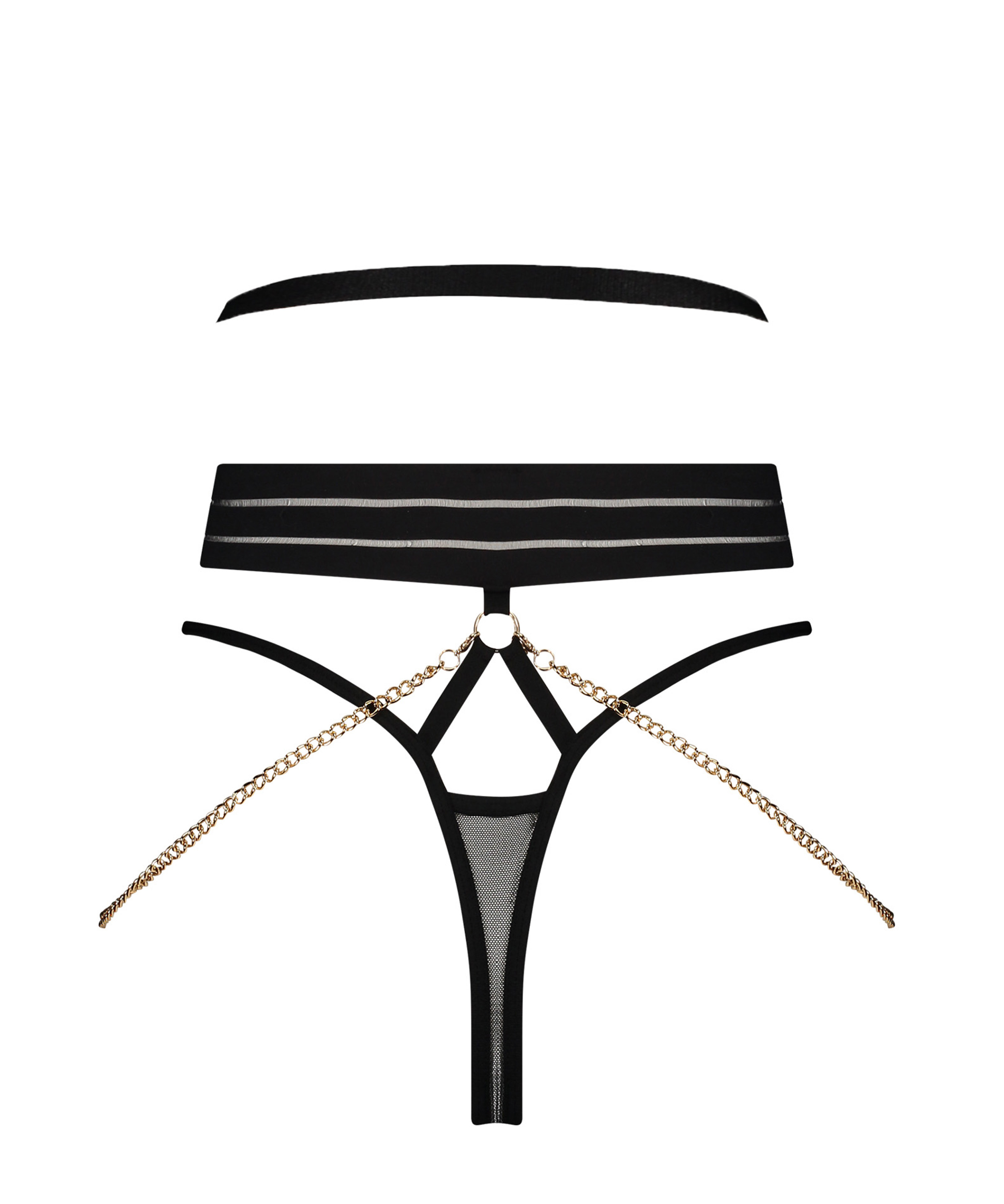 Pimentez votre look avec ce string. Il multiplie les lanières et les détails ajourés pour un style sexy. L'avant est orné de similicuir et de nombreuses touches dorées. Cet article fait partie de notre collection Private.