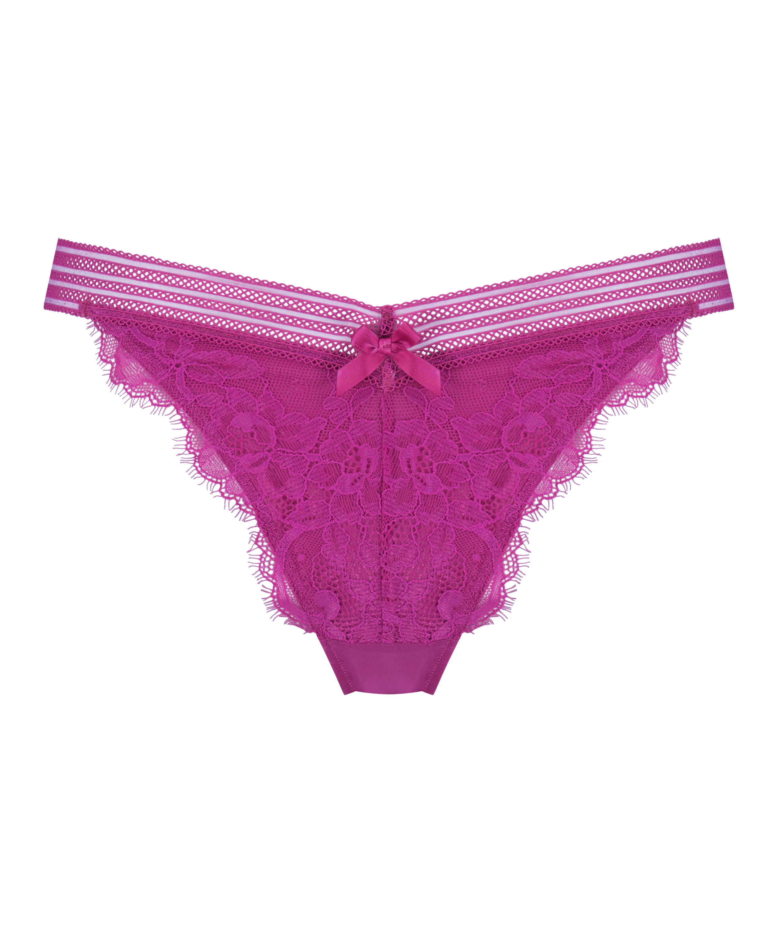Complétez votre ensemble avec ce magnifique string. Réalisé en dentelle, il est orné d'un nœud sur le devant. Ajoutez le soutien-gorge assorti pour un ensemble complet.